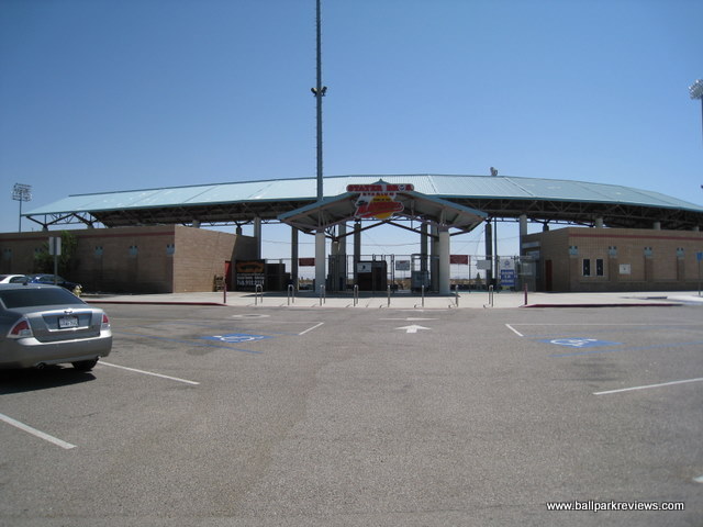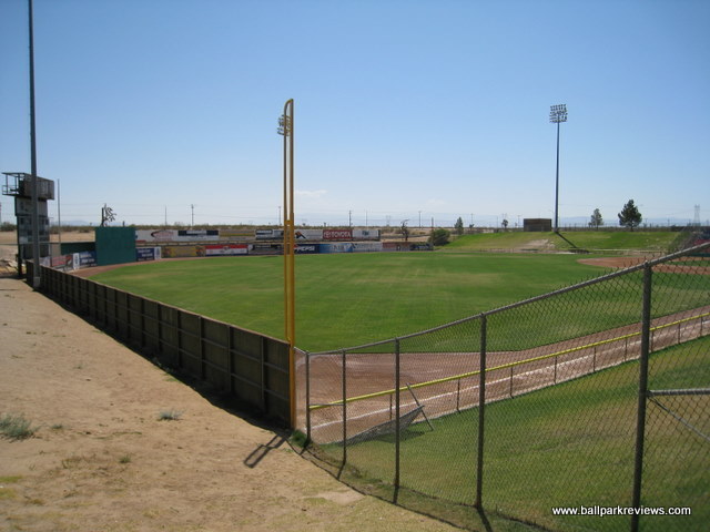 | Stater Bros. Stadium has been called by some an "oasis" in the middle of the desert. And I think that's a pretty accurate description. Depending on the route you take in, you may see some of the most desolate land in the country. It is pretty remarkable that baseball has survived in the middle of the desert. I was unable to get inside Stater Bros. Stadium on my visit here in 2008, but it looks to be a fairly standard 1990's ballpark. There have been rumors floating that the Mavericks could be one of two California League teams (the other being Bakersfield) shifted to the Carolina League for the 2010 season. While it didn't happen in 2010, it finally will happen in 2017. After disputes between the team and the city, it was only a matter of time. After the Cal League team left, the Pecos League put a team here starting in 2017. That team went defunct before the 2021 season.