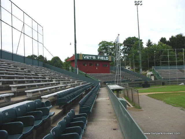 | A few years before Altoona built Blair County Ballpark to host an Eastern League franchise, an independent league team called Vet's Field home for two seasons. In 1996, the Altoona Rail Kings were part of the short lived North Atlantic League. Then in 1997, the Rail Kings switched leagues to the Heartland League. I am unsure if this ballpark ever hosted any professional teams before 1996. Despite being quite old, the park still appears to be in decent shape. The grandstand is split into three sections of seating, each of which is uncovered. All the seating is backless metal benches except for a couple rows of bucket seats. Vet's Field is nestled into a neighborhood at the top of a hill, making for a rather unique setting. While it will never host pro ball again, Vet's Field apparently still gets plenty of use by amateur teams.