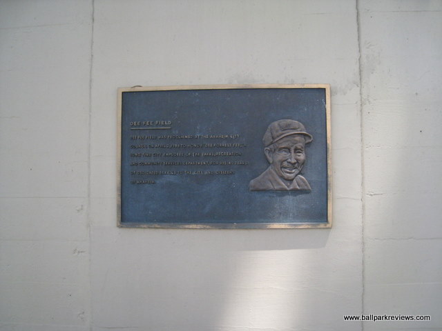 | Though it's been around since 1939, La Palma Park was only used for professional baseball for three seasons - all back in the 1940's. Currently it doubles as a football stadium as a large grandstand is located behind the outfield fence. La Palma Park was also the sight where some scenes from the Jackie Robinson Story were filmed in 1950. I was unable to get inside on my visit here in 2008. |