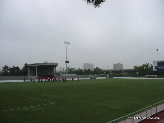 ticket office building is a grandstand that is part of what is now Nickerson Field. The upper part of this grandstand made up