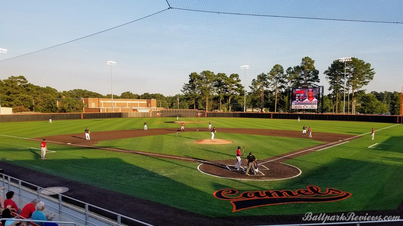 Buies Creek had never hosted professional baseball before 2017. And after 2018, they probably never will again. But due to a unique arrangement established by the Houston Astros, a Carolina League team was allowed to set up shop here while awaiting a new ballpark to be constructed in Fayetteville (about 45 minutes to the south). Apparently the Astros simply wanted a good facility for their players and didn’t care about drawing fans. Because of this, for the baseball purist, it doesn’t get much better than this. Located on the campus of Campbell University, Jim Perry Stadium is also the home of the college team (the Camels). While the field dates back to the 1940’s, a new grandstand was built in 2011 and additional renovations (including an artificial turf field) were completed before the 2017 season.