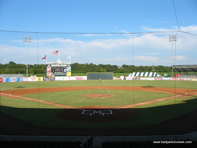 | This LaGrave Field is the second version of a ballpark on the same location. The previous ballpark was used from the 1940's to the 1960's to also host a minor league team named the Cats. After being torn down, this spot of land remained unused for many years until the new Cats came along in 2002. Certainly the team could not have found a better location to build the new ballpark. With the history of baseball on this site and the view of the Fort Worth skyline, it is just about perfect. LaGrave Field is a rather funky ballpark that really does not feel like any other. It has some elements of the standard new ballpark template, but also has some elements that make it unique. Overall, the park feels a bit chopped up due to the different seating sections. The reserved box seats offer the best sightlines in the park. The field box seats, located down the right field line, are close to the field, but are not sloped enough. Bleachers in left field and right field complete the seating. The right field bleacher section has a nice roof overhead making for a very distinct look. But the most unique feature of LaGrave Field is probably the location of the two luxury suites. The dugouts from the original park were salvaged and converted into suites. These suites sit directly next to the new dugouts. The concourse overlooks the field and is also covered by a newly added roof. Concession stands dot the concourse, though strangely none of them are permanent. The exterior of the ballpark is also very distinct with its sandy brown color, green roof, and white lattice. Concessions at LaGrave Field are average at best. The variety is limited (BBQ and brats being the only unique items) and quality is not great. The Cats have really tried to emphasize their tradition and make the ballpark experience an "old-time" one. And they have done a pretty good job at it. The atmosphere is very laid back and there seem to be many loyal followers. Several on-field contests are done and there is a mascot (Dodger) wondering around, but neither take away from the baseball experience. My only minor complaint is with the price of parking - $3 is a little high for a Central League park when most teams in the league don't charge at all. Overall, I really enjoyed my visit to the new LaGrave Field. A quirky ballpark and a relaxing atmosphere combine to make this a wonderful place to take in a game. Unfortunately, the future of LaGrave Field is now in some doubt as no baseball will be played here in 2015. There has been talk about redeveloping the land (and thus tearing the park down), though not sure how realistic this is. Hopefully another league will look to put a team here in 2016.
