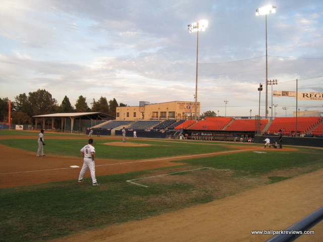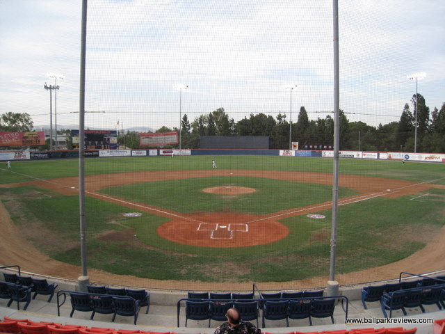 | Goodwin Field was my first experience with minor league baseball in southern California and it certainly did not leave me with a favorable impression. The ballpark itself is fine, but the atmosphere and the team operations were simply pathetic. With a huge population base, you'd think the Flyers would have no problem drawing decent crowds, but instead they struggle to draw 500 fans most nights. But after experiencing it first hand, I guess I know why. Goodwin Field is located on the campus of Cal State Fullerton, a university with a strong baseball program. Parking is plentiful, but costs $5. But only on weekdays. On weekends it's free for some reason. The ballpark features a complete uncovered grandstand with mostly stadium seats, though there are some bleacher sections down each line. Most of the seats are close enough to the field, but unfortunately the netting extends to the end of each dugout meaning the majority of the views are obstructed. A large scoreboard is located behind the left field fence, though the message board is not used at all. I was surprised to see that the field was in such bad shape – the grass had lots of brown patches and it just did not look good. Perhaps it just gets too much use. The concourse runs along the top of the seating bowl and is in view of the field. There are no permanent concession stands – instead there is a trailer which serves as the main stand and several other smaller stands. The concessions are lacking in both variety and quality. And besides that, they are overpriced. Hot dogs are $5, sausages are $6, and a large beer is $12. The only unique item they have is the tri-tip sandwich, which seems to be a favorite in SoCal. Other than the poor concessions, my biggest complaint was with the atmosphere and unprofessional staff. When I arrived at the park just before the gates were to open, employees were shooting each other with water guns and goofing off. Even after the gates opened, they still didn't seem to care that they had a job to do. If they had a boss, he was either not there that night or just didn't care. As for the atmosphere, it was hardly family friendly, which is always the case at minor league ballparks. I realize this is southern California, but do the Flyers really need to have a dance team of scantily dressed “women” ? Lots of men were gawking, but apparently even they couldn't help to bring out more fans. There were several on field promotions between innings including race the mascot (a wolf named “Coal Train”), tug of war, and “throw the hoop on the dance girl”. Lots of music was blared between batters, but sound effects were kept to a minimum (with the exception of an occasional howl). The team has a play area in the left field corner which consisted of two dirty inflatables. Overall, it just didn't seem the Flyers were putting much effort into impressing the fans that did come out. Lackluster concessions, an atmosphere geared more towards dirty old men than kids, and staff members who didn't want to work are all signs to me that the Flyers' management is just plain lazy. Tapping hall of famer Gary Carter to manage the team in 2008 seemed like a great move, but it didn't help to draw any more fans. Although the Flyers did end up winning the Golden League championship. With so many other ballparks in southern California, it's hard for me to recommend Goodwin Field. Because of a poor lease situation, the Flyers have decided to pursue a new ballpark at the location of Ameriage Park. During this time the Flyers will be on hiatus.