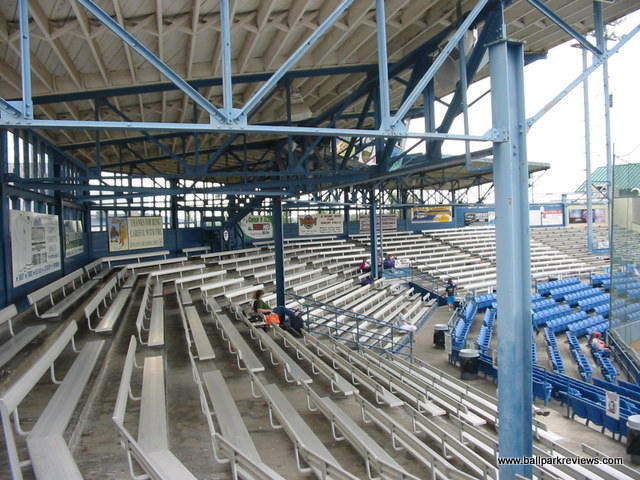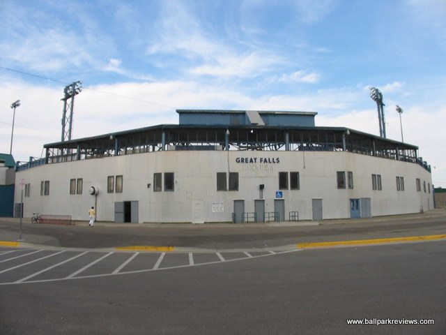| Centene Stadium (formerly Legion Park) is in the midst of a major renovation project as of 2006. At the Rookie League level, this is the way to go. While Billings has been discussing knocking down Cobb Field and rebuilding, Great Falls has taken the route of slowly renovating the existing ballpark. And the results so far are fantastic as they have been able to keep the essence of the old ballpark. Located north of the downtown and close-by to the Missouri River, Centene Stadium does not have the best of settings. There is no view behind the outfield wall and located adjacent to the ballpark is a General Mills flour plant. As of late 2006, the ballpark basically has two distinct sections - the original ballpark section and the new section. But the integration between the two is well done. The original covered grandstand has about 10 rows of box seats as well as metal bleachers. The new section, located down the third base line, consists of box seats, as well as some bleachers, a picnic porch and a grassy berm area. There is also a very old wooden bleacher section down the first base side which is scheduled to be removed when that side of the ballpark is renovated. As with other older ballparks, the sightlines are not always great. There is a fence or netting which seems to obscure the view from almost every seat in the house. The concourse runs beneath the grandstand and features several concessions stands. The gift shop and team hall of fame are located in the new section. While the hall of fame contains lots of memorabilia from past seasons, its location is a bit hidden and didn't seem to be getting much traffic. Concessions at Centene Stadium are average at best. The variety is decent (sausages, burgers, super nachos), but the quality isn't too good. Fortunately the prices are quite cheap. One highlight of the concessions is that they offer TCBY and smoothies (from the "Smooth Operator down the RF line). As with other parks in this part of the country, the atmosphere is pretty laid back. The team does do lots of between inning games and there are some effects played, but overall fans seems to be into the game. A couple of interesting things to note, which I don't ever recall seeing. First, the national anthem was sung by the PA announcer. He didn't have the best voice, but certainly didn't seem embarrassed. Also, the pledge of allegiance was done during the 7th inning stretch. It's these type of unique touches that really add a lot of charm to the minor league experience. With so many teams having a script they follow for their game day operations, it is quite refreshing to see teams that do things a bit differently. Centene Stadium is a great little ballpark that should only get better with the next set of renovations. Another must see ballpark in the state of Montana.