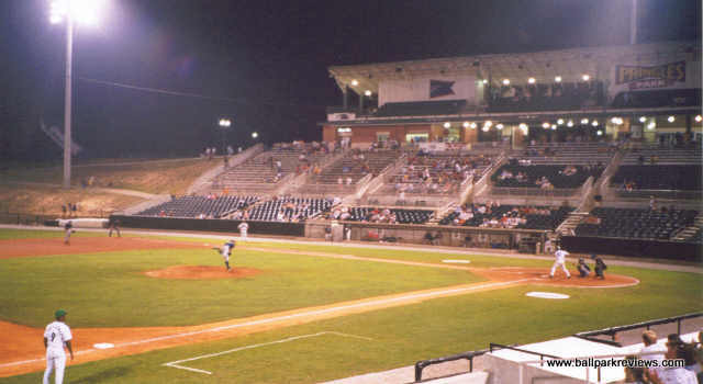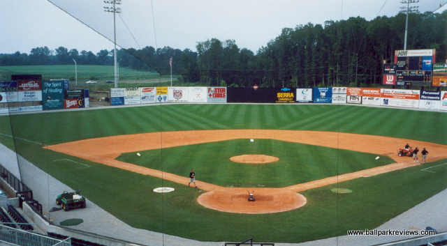 | Jackson, Tennessee seems like an odd location for a minor league team. Set in between two big cities (Nashville and Memphis), this rural city does not seem to have the population base to support a double A team. And this was clear the night I was there. Though attendance was listed as 2900, there wasn't much more than 1000 in the stands. The park itself is nothing spectacular. Built using a familiar template, you enter on the concourse which overlooks the playing field. Luxury boxes and club level seats reside over the concourse area. The seating is split between fold down chairs and metal bleachers (some with backs and some without). The abundance of bleachers give the park a rather cheap feel. A useless center concourse cuts the seating sections into two distinct parts. This center concourse pushes many of the seats further from the action than they need to be. A large picnic area with some games for kids is located deep down the right field line - not even in view of the playing field (the way it should be). A grill, featuring tasty cheese steaks and burgers is located down the left field line. A small souvenir store is located on the concourse behind home plate. The setting for Pringles Park (as it was originally called) is also unspectacular - it sits in the middle of nowhere right next to a highway. One annoyance here - they actually frown upon people taking flash photos while the game is going on. Overall, a serviceable double A stadium, but one that lacks any character. With the minor league restructuring of 2021, Jackson lost their team and it is unclear what the future holds for this park.