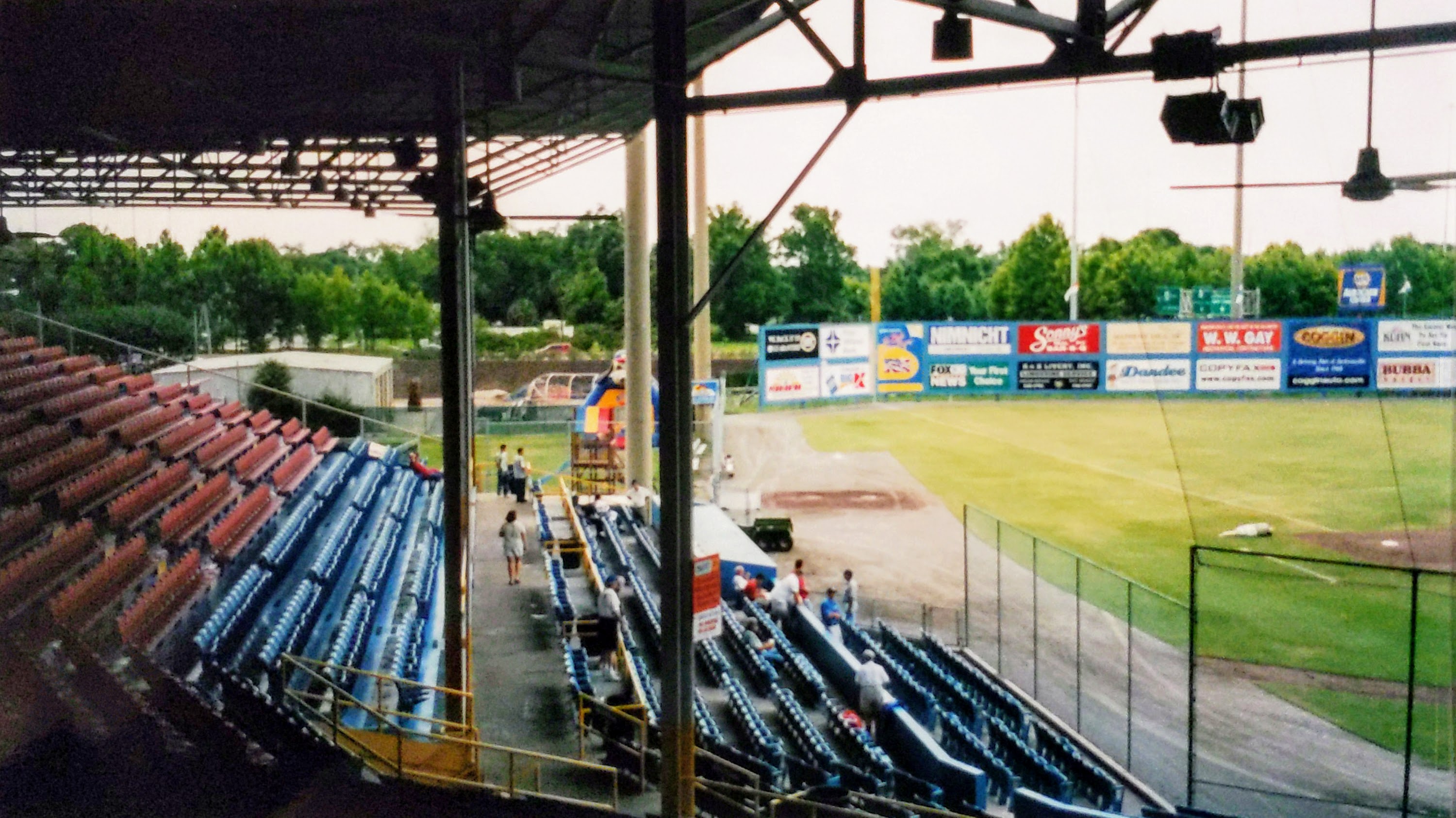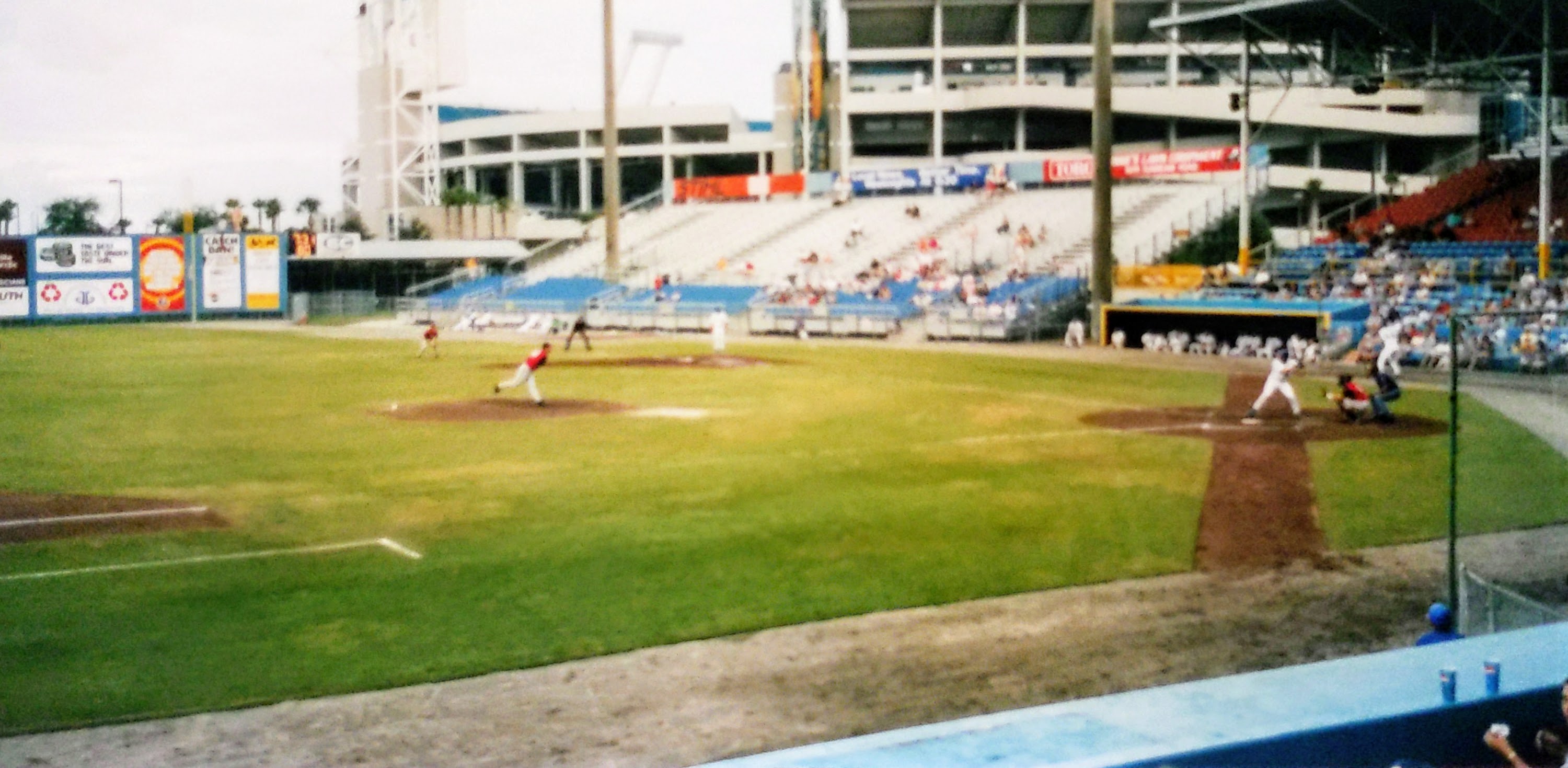 | Wolfson Park was a grand old place to see a game. After passing by it in 1999, I was finally able to take in a game during its final season in 2002. It was situated next to and shared a parking lot with Alltel Stadium, home of the NFL’s Jacksonville Jaguars. Unlike Tinker Stadium in Orlando, the football stadium fortunately did not provide the backdrop.