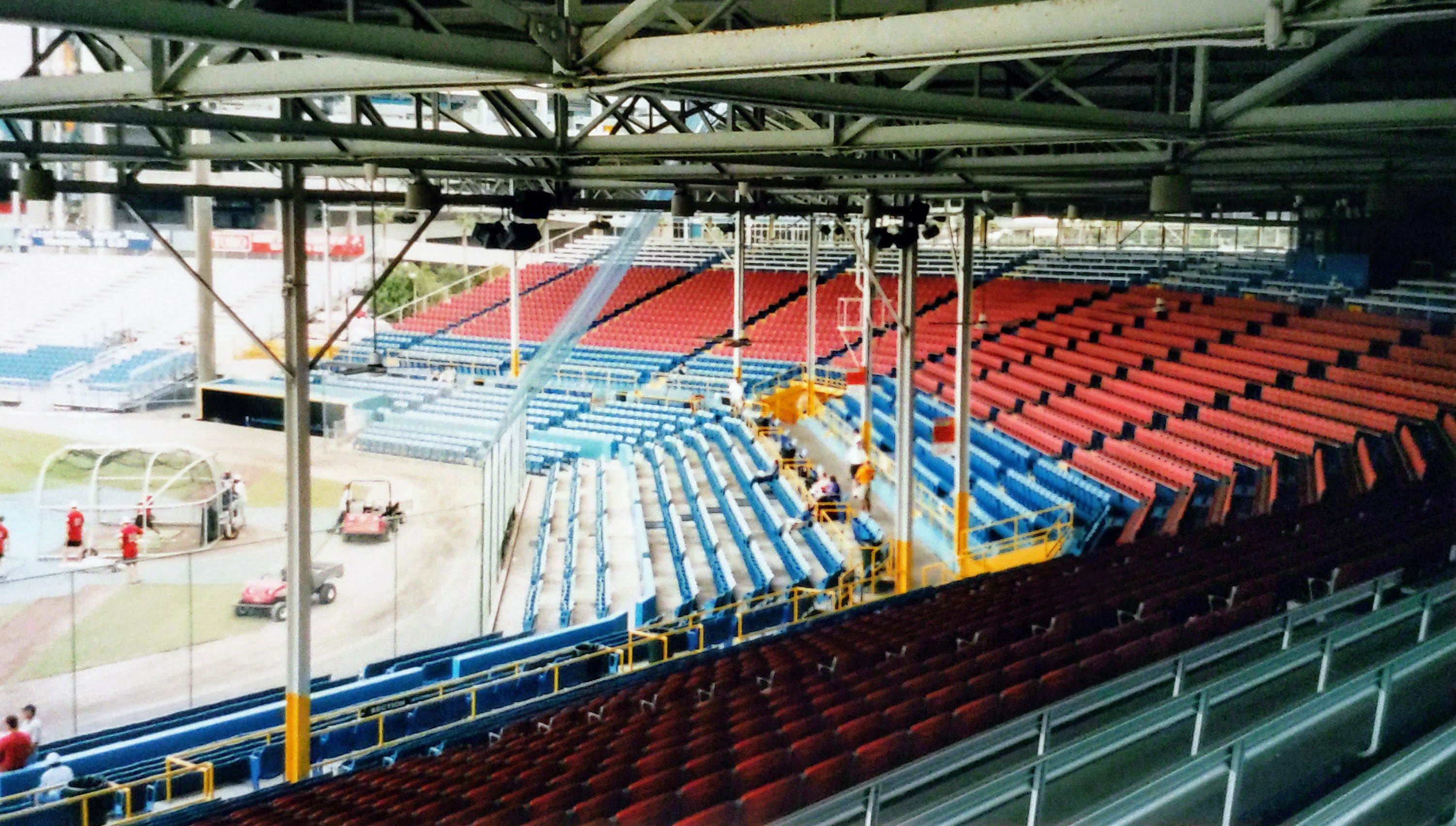 A range of seating options existed, with the best spots not necessarily being the ones closest to the field. A thick chain-link fence obscured many of the seats in the grandstand behind home plate. Interestingly, the first three rows of seats were positioned in front of the dugouts, allowing fans to look directly into them.