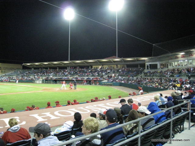 The concourse, located behind the seating bowl and out of view from the field, was uncovered and somewhat narrow. Despite that, it never felt overly crowded, proving sufficient for the typical Astros spring training crowd. Several concession stands offered an impressive variety of food—gourmet hot dogs (Texas, Fenway, Dodger, Chicago, and Cincinnati styles), fresh Mexican dishes, boiled peanuts, chicken pitas, and the ever-popular “chicken on a stick.” Prices were fairly reasonable compared to other spring training venues.