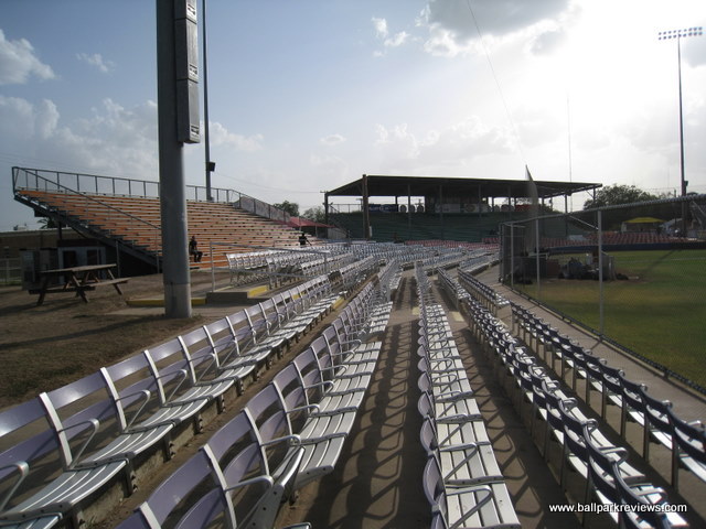 | Usually when I get out of the northeast, I'm fairly certain that I'm escaping much of the over the top atmosphere that plagues many of the ballparks in that area. Unfortunately, the two ballparks that I visited in south Texas on back to back nights were very reminiscent of my "home" ballpark in the Hudson Valley. Both believed that fans were not there to see the game, but were there to be entertained by various sound effects and sideshows. Now I realize that Veterans Field is not a flashy ballpark and that the independent United League doesn't provide the highest level of play, but can you let the game breathe a little bit ? Apparently, the answer is no in Laredo. Located in a residential section to the west of I35, Veterans Field underwent extensive renovations in the 1970's that included the installation of all the metal seating that currently comprises the park. The main grandstand is covered, but is set back a long ways from the field. Fortunately there are box seats at the field level that do provide better views. These seats also provide copious amounts of leg room – probably the most I've ever seen at a park. Besides the box seats, all the other seating is metal bleachers. Sightlines are poor here not only because of the how far back the seats are, but also because the netting obstructs all the seats. The concourse area is located behind the grandstand and features just two concession stands and a small souvenir table. Programs were free, but unfortunately there was no roster inserts to be found. Concession options include frito pies, cheetos with cheese, burgers, polish sausages, and chicken fingers. The prices were fine, but the quality of food left something to be desired. The biggest problem was that they seemed unprepared to serve food when the gates opened and were still struggling as game time approached. This is inexcusable at a professional ballpark. But as I eluded to earlier, this was not my biggest complaint. That came with the atmosphere which just included too much noise. Sound effects and music were blared between almost every pitch. The PA announcer was muffled. And the annoying onfield DJ, the “Dancing Chef”, thought he was the show. It's all a little much if you are there to see a baseball game. Though it seemed like most of the fans were into the game, so I'm not sure why the team finds the need to provide so many distractions. A few between inning games were done, but mostly just junk (t-shirts, balloons, etc.) was tossed into the crowd. Strangely, there is no kid's play area at Veterans Field. There is very little to recommend here. The ballpark is boring, the atmosphere is over the top, and the quality of baseball is poor. The team has been trying to get a new ballpark built on the other side of town and here's hoping it happens. Then at least there may be one reason to go to the ballpark. A new Laredo ballpark will be opening in 2012, but it won't be for the Broncos. Instead, it will be for an expansion team in the American Association. Because of this, the Broncos ceased operations and there will be no professional baseball in Laredo in 2011.