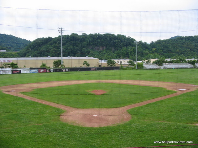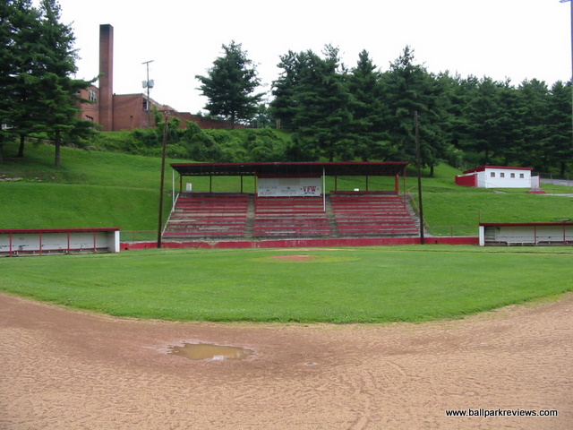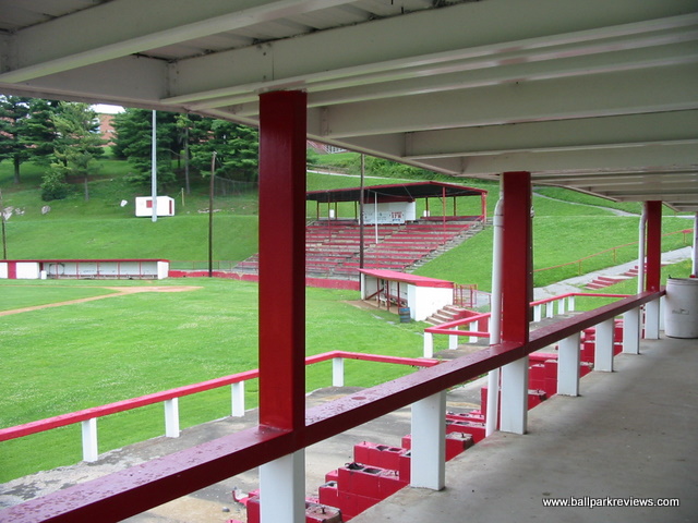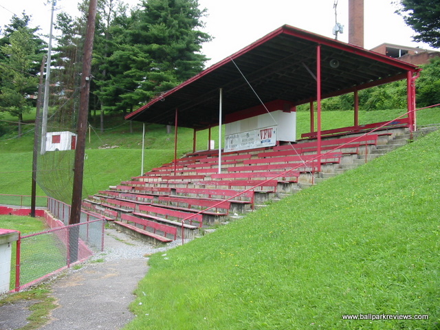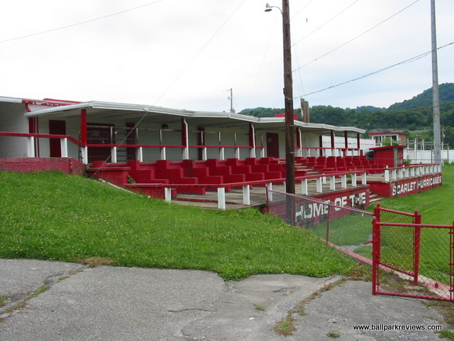 | This ballpark was used to host an Appalachian League team (the Marion Mets) from 1965-1976. Located on the grounds of the city high school, it is now used for youth sports. While the field is in decent shape, the same cannot be said of the grandstand. Many of the seats in the structure behind home plate are rotten and/or broken. And in the structure on the first base side, only the risers from a former bleacher section still remain. It is unfortunate to see that almost no upkeep is being done on this former minor league ballpark. If anyone can provide further info on this park, such as the name or year it was built, please drop me an email.
