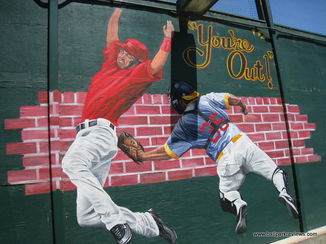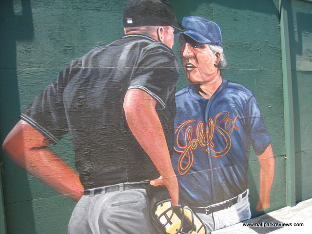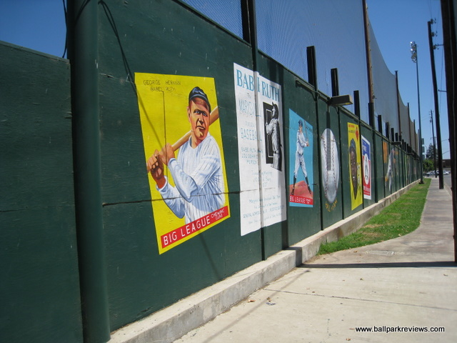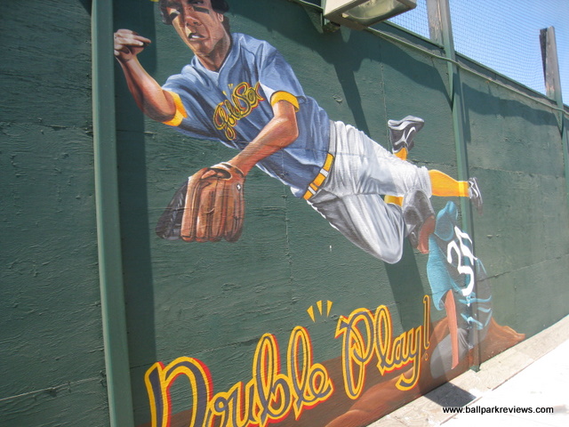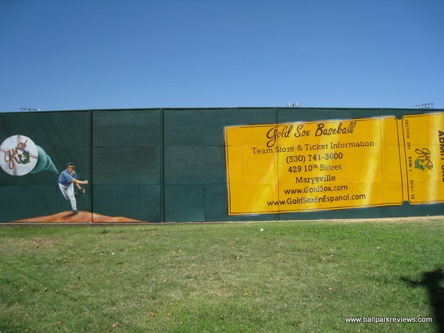 | Colusa Casino Stadium (previously known as Bryant Field) was home to a Western League team in 2000 and 2002, but this is the only professional baseball it has seen. Currently its primary tenant is a summer collegiate team, the Marysville Gold Sox. One of the cool things about this park is all the baseball murals painted on the exterior. Unfortunately, I was unable to get inside to snap some photos during my 2010 visit. Apparently this park was rebuilt in 2000 for the arrival of the Western League team. If anyone knows anything about the original Bryant Field, I would appreciate hearing from you.