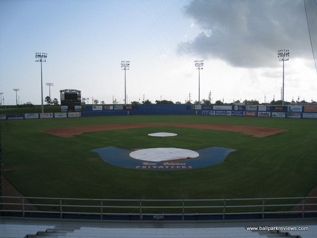 | Privateer Park was a temporary home to the New Orleans Zephyrs from 1993-96 while they were waiting for Zephyr Field to be constructed. It is located on the campus of the University of New Orleans and today is used exclusively by the college baseball team. The ballpark consists of mostly metal bleachers with just a few chairback seats. It is a bit surprising to think a AAA team played here for four years, though it is perfectly suited for college baseball. |