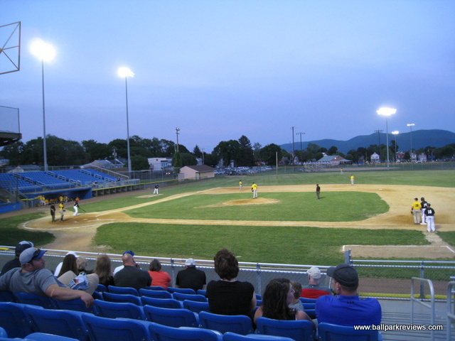 | Delano-Hitch was the home of the Newburgh Night Hawks of the Northeast Baseball League from 1995-96 and the Newburgh Black Diamonds of the Atlantic League in 1998. At the time, it was a fine facility for such a low level of the minors - better than some parks which were in use in the New York-Penn League and Northern League. Unfortunately it has been the home of teams with poor management and uncertain futures. The park received some major renovations after the 1998 season. A new building was constructed along the first base line that houses the clubhouses as well as a concession stand. Also included in the renovation was the removal of the rickety wooden bleachers that were down both foul lines. They were replaced by individual folding chairs on a metal grandstand. They really did a nice job of blending the new sections into the existing covered grandstand. A new pressbox was added before the '98 season. Also added for the '98 season was a manual scoreboard in right field. It really adds a nice touch to the park. The field is currently the only problem with this park - it is very uneven, especially in the outfield. Definitely a pitchers park with big dimensions, though it seemed to be a great triples park as the ground is hard, and balls get to the gaps very quickly. Concessions and souvenirs were set up out behind the grandstand on a grassy knoll. The future for baseball at Delano-Hitch does not look bright. There have been no rumors of Newburgh getting a team since the Black Diamonds left after the '98 season. With an ownership group that cared and promoted the team properly, I am confident that a team could draw 1,500 fans a game from this well populated area. A college league team did use this park for several years after the Black Diamonds left, but since then, it has received little use. Though in 2015, professional baseball returned as the startup North Country Baseball League put a team here. The Newts lasted just a couple of weeks, however, and then left the city due to "lack of community support". But that was just a line from the team as the community was never given a chance to support the team because of poor marketing. It is very unlikely that professional baseball will ever return to "The Hitch" as it simply is not a suitable ballpark in this era for anything more than amateur baseball.