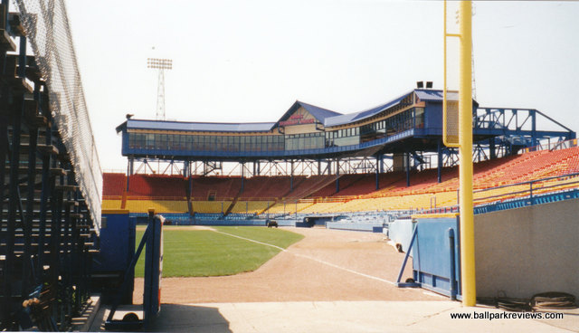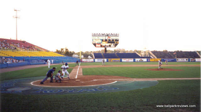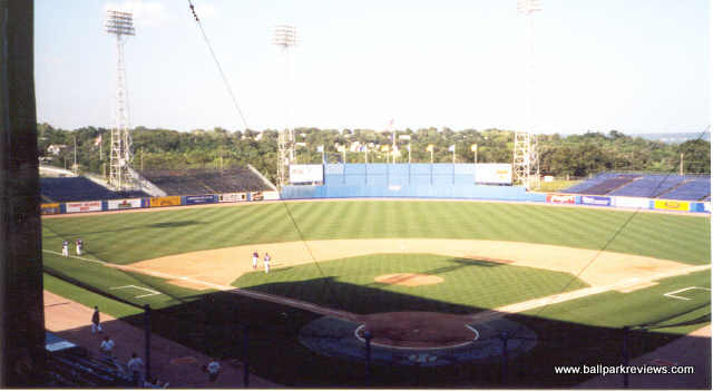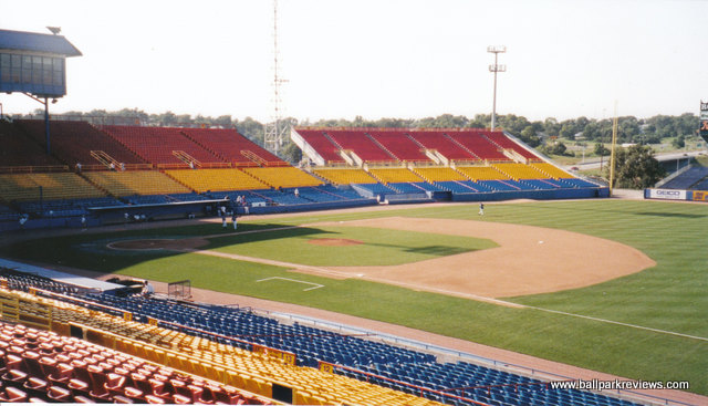 | Rosenblatt Stadium is probably best known for being the home of the College World Series, but it is also a fine minor league facility as well. They have been home to the Royals AAA farm team since their inception. Despite the "pieced together" look of the stadium because of all the expansions they've done, it is still an excellent place to see a ball game. There are plenty of seats under cover for those that desire shade as well as many seats out in the open. There are seating sections that run as far as the foul poles down each line, as well as bleacher sections in the outfield. All the sections are not open for every game however. The concourse area is tucked underneath the seating area, and provides an excellent assortment of concession stands as well as housing the ticket office and souvenir stand. Before the game a Dixie band plays in the picnic area which is in front of the stadium, and which you enter through. There is just one scoreboard - in left field right next to the foul pole. The outside of the stadium is rather unappealing, though unique. It looks like a big blue erector set. I assume the point of all these big beams is to hold up the press box. As for in game promotions, they do very little on the field. There are lucky numbers and other games which fans can compete in, though. Parking is free and plentiful. Just a really nice place to see a ball game. Unfortunately, plans are now underway to build a new $140 million stadium for the College World Series and to demolish Rosenblatt. As of August 2008, the Royals were threatening to look elsewhere for a new ballpark since the lease offer wasn't cheap enough. But I'm sure a deal will be struck at some point since you don't spend that much money on park that will only be used for 2 weeks a year. A group (Save Rosenblatt) had formed to try to save the old ballpark, but they were unsuccessful despite the presence of such celebrities as Kevin Costner. It now appears that Rosenblatt Stadium will only be in use through the 2010 season. A new ballpark was built in suburban Papillion for the O-Royals. With a new ballpark also opening for the college world series, Rosenblatt Stadium will be demolished to make more room for the adjacent zoo.