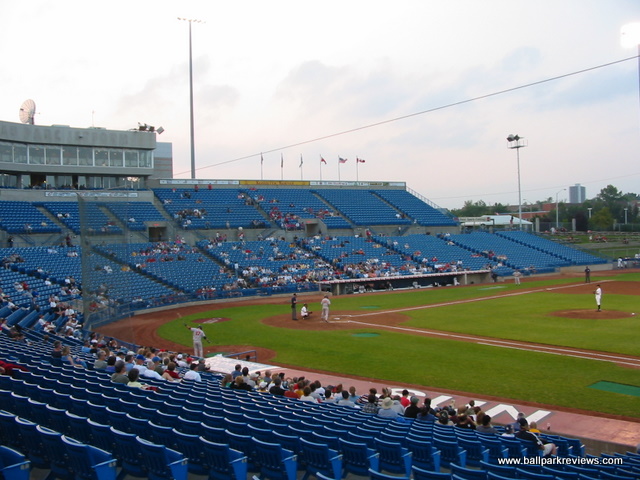 | When it opened in 1993, RCGT Park (then known as Jetform Park) was one of the best draws in all of minor league baseball. But only a decade later and the Lynx were at the bottom of the attendance figures. So what happened to keep people away ? Perhaps part of it is the ballpark, but that can't be the only reason. RCGT Park is a very ordinary park which has a rather sterile feel because of all the unpainted concrete. The design is more typical of the pre 1990's as the concourse is behind the seating areas and not in view of the field. The seating is made up of all fold down chairs and is split by the walkway which leads to the concourse. This means that half the seats are a bit far from the action. Several concession stands are located along the concourse, but apparently only a few of them are used because of the small crowds. A grill is also located in the picnic area in left field, but for some reason it was not open the night I visited. The variety of concessions is about as weak as you'll find at a minor league stadium with the only unique item being poutine (gravy fries), which is Canada's favorite fast food. Unlike the very unique atmosphere you'll find in Quebec, here it is much like any ballpark in the U.S. Lots of rock music, sound effects, and between inning games. I guess that can be attributed to the fact that most of the front office is American. Ottawa Stadium is located on the east side of Ottawa, directly off Rt 417. One nice feature is that it is sunken below street level - this allows passersby to peer into the park from left field. For those coming from the U.S., it would be wise to exchange your money before coming to the ballpark. They will only take American money at par value. Also, prices here are actually a bit on the high side, even with the exchange rate. Ottawa Stadium isn't a bad place to see a game, but there is just nothing that stands out or is memorable. With the current ownership most likely looking to move the franchise, the Lynx will probably not be here much longer. Of course with so few fans coming out now, not many people will miss them anyhow. 2007 will be a lame duck year for the Lynx as they will be moving to Allentown in '08, once the new ballpark is completed there. For the 2008 season, a Can-Am League team took up residence here. But they were unsuccessful and folded after just one season of play. After several years of use strictly by amateur teams, the Can-Am League returned in 2015 with a new team, the Champions.