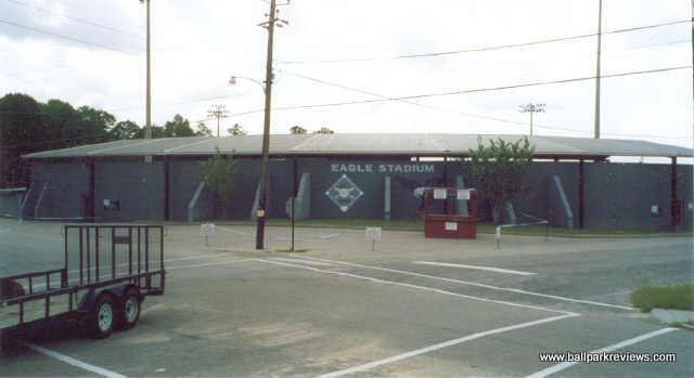 | Eagle Stadium was host to a professional team for a short time in 2002. The Ozark Patriots of the independent Southeastern League played here before folding midway through the season. Professional baseball was also played here in the 1940's and 1950's as part of the Alabama-Florida League. The park features a very small, covered grandstand, that contains all bench seating. There are also some metal bleachers down each line. The dimensions of the field are huge here as center field is 440 feet from home plate. Eagle Stadium is set in a residential neighborhood and has a nice facade that faces the street. While it was great to see professional baseball return here in 2002, it seems unlikely that it will ever get another chance. The area is just not large enough to support a team. Still, Eagle Stadium is a nice reminder of what the minor leagues were like 50 years ago when numerous small communities each had a team to call their own. It is certainly worth checking out this piece of baseball history if you are in the area.