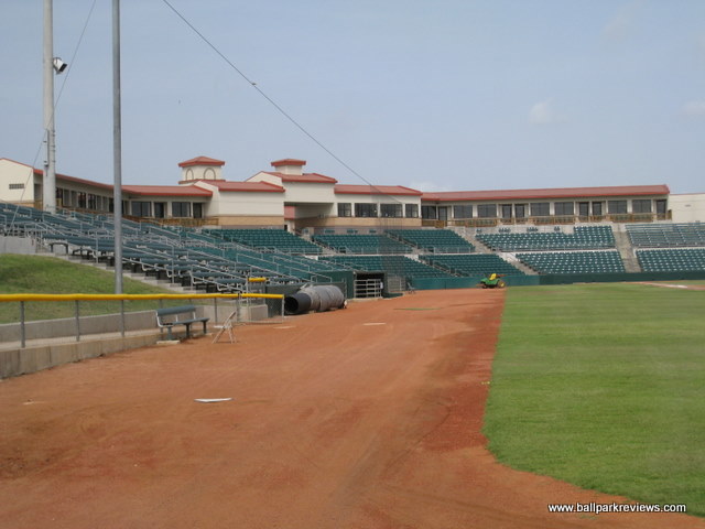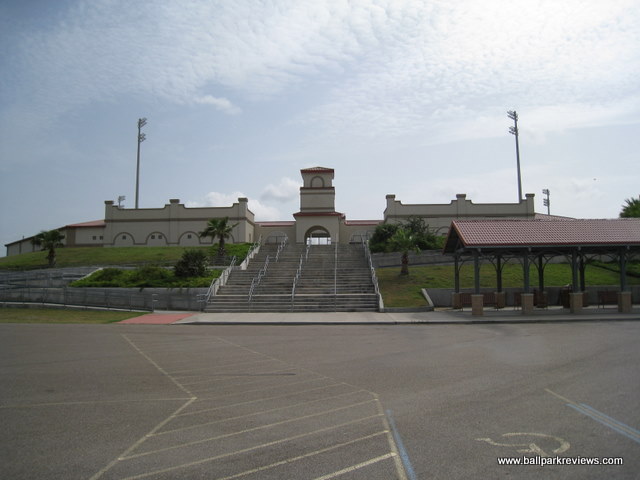 | The saga of Fairgrounds Field could end being a sad one. With the arrival of the Hooks in Corpus Christi (some 15 miles east of Robstown), it seems that the future of this ballpark is in some doubt. While it still was hosting a pro team in 2008, attendance was pathetic (around 100 per game) and the future of the Continental League does not look bright. While I was unable to get inside on my visit, this looks like a nice enough ballpark and would be a shame to see it abandoned after such a short time. The affiliated teams complain a lot about independent teams infringing on their territory, but this is one case that is vice versa. I really hope that an independent team can survive here in the future despite the bleak outlook. It first appeared that no team would be playing here in '09, but with the United League being resurrected, Robstown will get another chance. Unfortunately, after two lackluster seasons, the team has folded. No professional baseball will be played here in 2011.