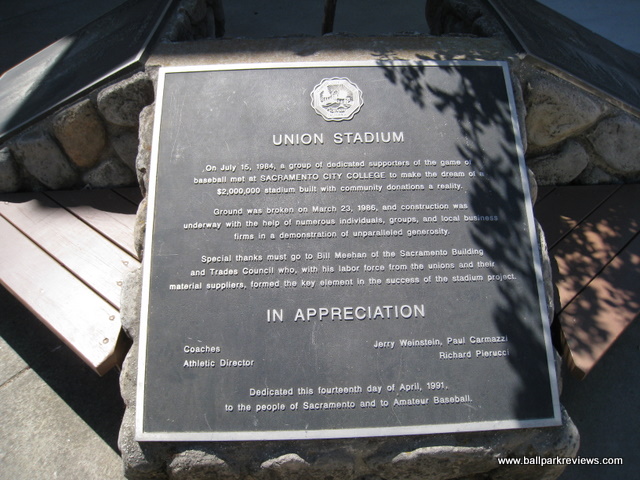 | Union Stadium, located on the campus of Sacramento City College, hosted professional baseball for one season. In 1999, the Sacramento Steelheads of the Western League played here. I was unable to get inside during my 2010 visit. |