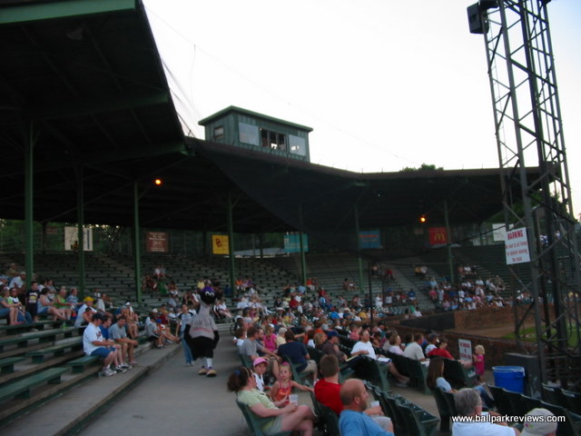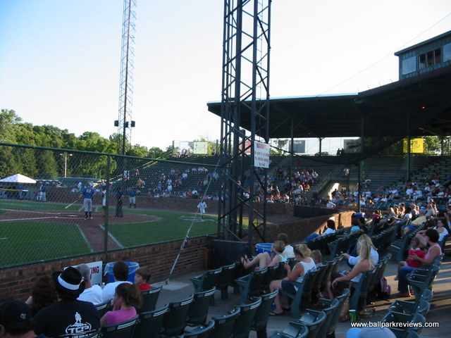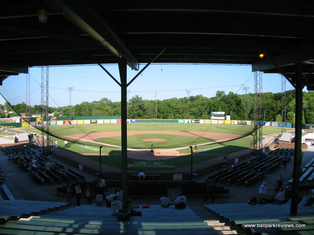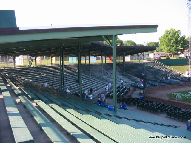 | With the return of a team in 2006, Phil Welch Stadium saw professional baseball for the first time since 1954. This is somewhat surprising since the facility is in great shape and there have been numerous independent leagues to give it a chance. Whatever the reason, the American Association came knocking in '06 and placed the Blacksnakes here. The ballpark, nestled in a residential neighborhood and located adjacent to an ice rink, is about what you'd expect from a facility built in the 1930's. There's a large covered grandstand, but few other "amenities" that cam be found at newer parks. But that's ok, since most of the fans seem to care about the actual game and don't need anything else to make their visit more enjoyable. The seating consists of 6 rows of box seats (in front of the grandstand) and the rest is all bench seating. While the box seats are spacious and close to the action, the sightlines are obscured by a chain link fence and light poles that are actually built into the seating sections. There is also a grassy berm along the left field line, but this area does not provide good views of the field as it is set too far back from the field. While Phil Welch Stadium can hold 3,600, having this many on hand would cause some problems since the concourse is tiny (only runs half way around the grandstand) and there is only one entranceway to the seating. A couple of small concession stands are located on the concourse behind the grandstand. Only the ballpark basics are offered for fare, but the prices are reasonable and the quality is decent. The atmosphere definitely has a small town feel where fans come to watch a game and shoot the breeze with their neighbors. There are many on-field contests (Sumo, boxing, race the mascot, burger eating, sing for your supper) and the team does have a mascot (Roobie), but these don't detract from the game at all. The Blacksnakes haven't been a great draw in their first year in the AA, but hopefully the league will give them time to build up a fan base so they can remain for many years. It's great to see pro baseball at an old time ballpark like Phil Welch, so hopefully the franchise can succeed. Unfortunately, after two seasons of subpar attendance, the team folded.