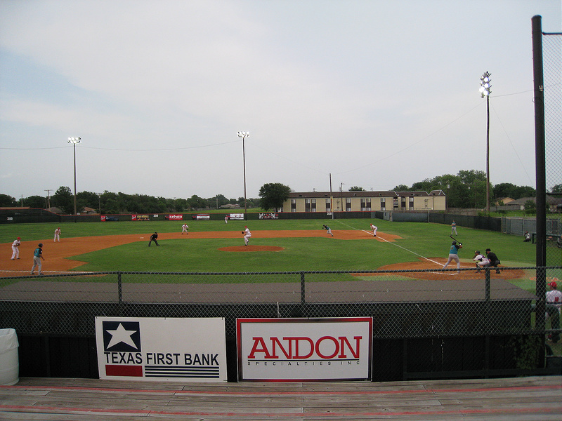 | As with most of the facilities that the Continental League has used in its first two years, Robinson Stadium is not really suitable for professional baseball. Located in a southern suburb of Houston, the ballpark is set in the middle of a neighborhood, which does make for a very serene atmosphere. Robinson Stadium is a very basic facility, comprised of just a large wooden grandstand, which is completely uncovered. All the seating is benches without backs, so bringing your own seat back is recommended. Sightlines are poor here as the netting obstructs the views from all the seats in the grandstand. The concourse area is located behind the grandstand and is also completely uncovered. It features one large concession stand and a small souvenir table. Concession options include frito pies, sausage on a stick, mozzarella sticks, fried pickles, and fried green beans. For such a small operation, the variety of food options is quite impressive. Prices are quite cheap and the quality is good. But I was most impressed with the very laid back atmosphere. There was no wacky sound effects and the fans seemed into the game (though there wasn't that many of them). Also, there was no between inning games or mascot to distract the fans. If you're not here to watch baseball, you'll be pretty bored. One other charming aspect was the two small kids who were selling bubble gum in the stands. I'm sure they weren't authorized by the team to do so, but nobody bothered them. And most fans couldn't resist buying some gum from the cute kids. My only complaint with the atmosphere is that the team didn't play the national anthem or Take Me Out to the Ballgame. The PA announcer said it was because of “technical difficulties”, but they were able to play music in between innings, so I'm not sure what the real reason was. Perhaps someone had taken the recordings home with them and not brought them back. A couple other minor complaints here – first, the tickets are priced at $8, which seems a bit high considering the seats are so uncomfortable and the quality of play is so low. Secondly, there was no programs or scorecards available. So there was no way to tell who the players were. How hard is it to just print up some roster sheets ? Attending a game at Robinson Stadium is definitely an interesting experience – it is certainly not like 99% of other minor league ballparks. I'm not sure the CBL will survive for much longer, but I was happy I got to see a game in Texas City. And in fact the CBL only lasted into the 2010 season before folding.