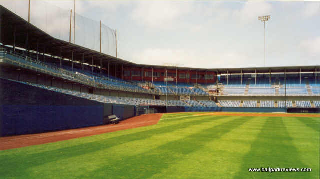 | Drillers Stadium is another midwestern park built on a county fairgrounds similar to Toledo and Louisville. This is probably the best of the three, however, as it was built exclusively for baseball. The stadium is a bit strange in that the majority of the seats are in the upper deck. Despite this, most of the seats are not too far away as the deck is not that high. Most of the upper deck is covered, while none of the seats in the lower level are. Poles can obstruct the view of some seats, but only when there are large crowds. The seats are all metal so can be very hot until the sun goes down - fortunately they start most games at 7:30. The concourse area is located behind and beneath the grandstand. There are numerous concession stands offering a wide variety of food from pizza to hot dogs to fajitas. The fajitas here are great - for $3 you get a huge tortilla stuffed with chicken or steak and all the fixings. All the concessions are reasonably priced. A small souvenir stand is also located on the concourse - the prices here were not as reasonable. My only complaint about the concourse was the lack of picnic tables. With how spacious it is, it would be nice to see more tables for people to eat at. While the park is located on the fairgrounds, it still borders two streets. Because of this, a large netting has been erected in the outfield to protect passing cars. Only a couple of on-field contests were done, and sound effects were kept to a minimum. A mascot named Hornsby was present, but only made one brief appearance. Drillers Stadium may not measure up to some of the newer stadiums, but is still a suitable park for Double-A baseball. But because all the other teams in the Texas League had shiny new parks, Tulsa decided to follow suit. A new downtown ballpark will open in 2010. The city has not yet decided what will become of Drillers Stadium.