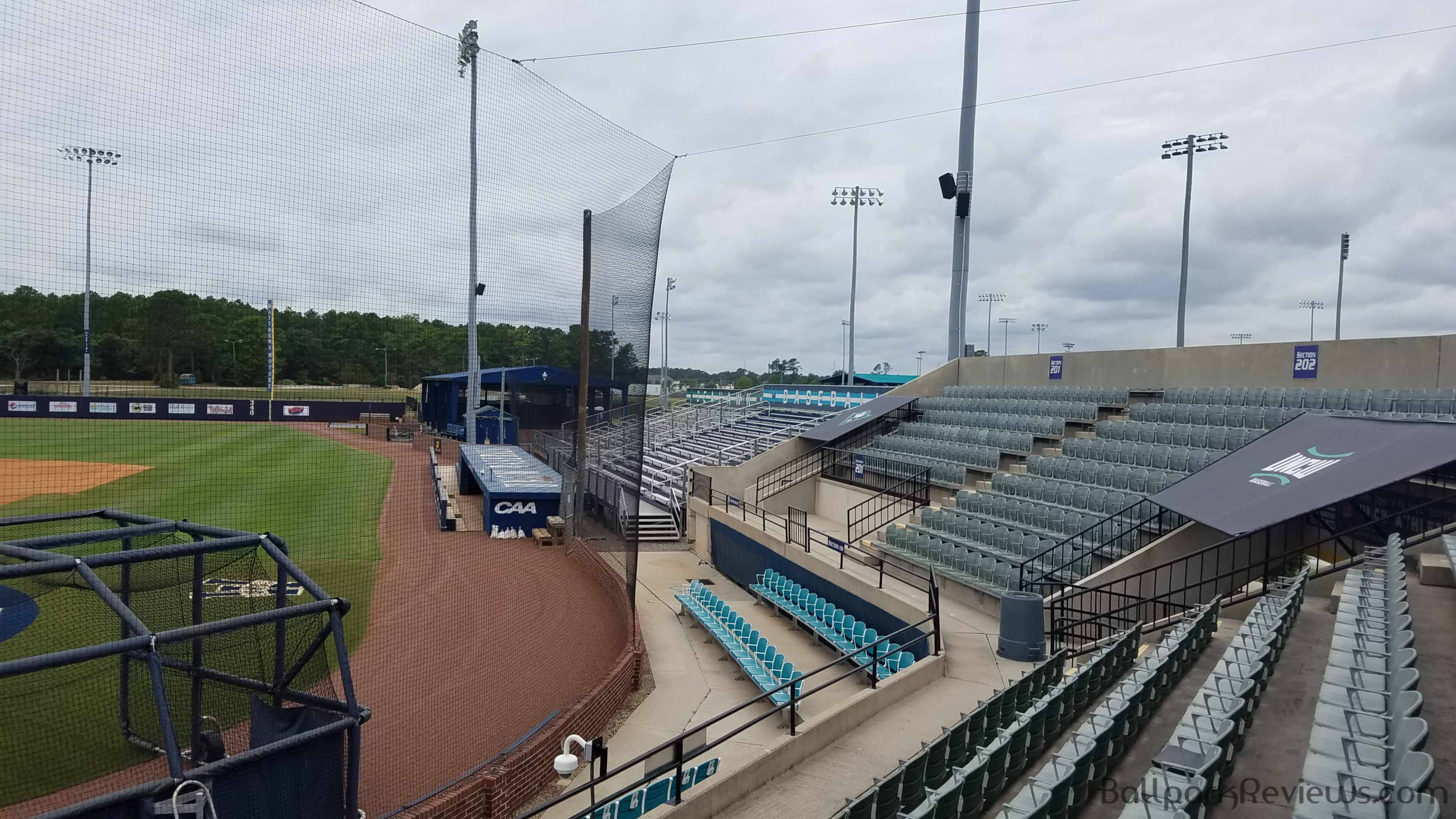 | Brooks Field, located on the campus of UNC-Wilmington, has twice hosted professional baseball. For two seasons (1995-96), it was home to the Port City Roosters of the Southern League. Then in 2001, the Wilmington Waves of the South Atlantic League played here. While pro ball will probably never be played here again, it is a perfectly suitable college ballpark. Wilmington did try to bring the Lynchburg Hillcats here in 2014, but a new ballpark referendum was rejected by the voters. It does seem like a big enough city to have a team, but won't get one without building a new park.