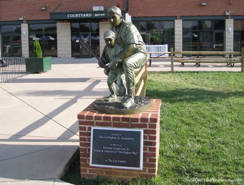 | The Ripken Complex sits adjacent to Ripken Stadium in Aberdeen. It contains several youth fields, each modeled after a famous MLB ballpark. The main field, named after Cal Ripken, Sr., is modeled after Camden Yards. A Marriott hotel replicates the warehouse building in the outfield. If you are here for an Ironbirds game, definitely take some time to roam around the complex as it is quite impressive. |