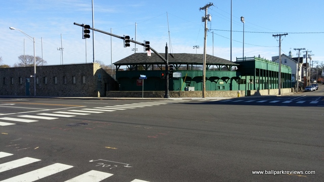| Cardines Field has sometimes laid claim to being one of the oldest ballparks in America, though the evidence suggests that the ballpark was most likely built in 1938. Baseball has been played on the site since at least 1908, however. No matter, Cardines Field is an historic and unique ballpark that is is nestled into the downtown of picturesque Newport. While professional baseball has never been played here, it has hosted numerous amateur teams over the years. Most recently, it has been home to the Newport Gulls of the New England Collegiate Baseball League. I was unable to get inside during my visit in November of 2015, but hopefully I will get back for a game someday. It is definitely a must see for any ballpark fan!