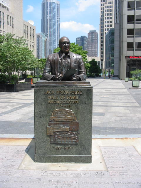 | This statue of Jack Brickhouse, the legendary Chicago announcer, is located in downtown Chicago on Michigan Avenue. He was the longtime voice of the Cubs and White Sox and was inducted into the broadcaster's wing of the Baseball Hall of Fame in 1983. |