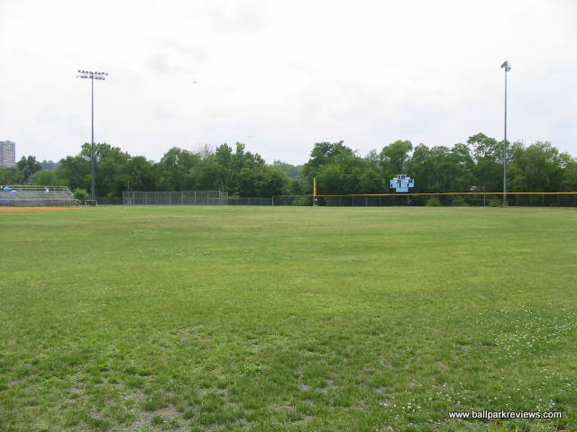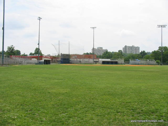 | Four Mile Run Park was home to a Carolina League team for 6 years (1978-1983). Located in the middle of a city park and next to a middle school, this park was obviously never meant for professional baseball. It is basically just some metal bleachers setup around a field. While I couldn't get inside on my visit, it doesn't appear that I missed much. |