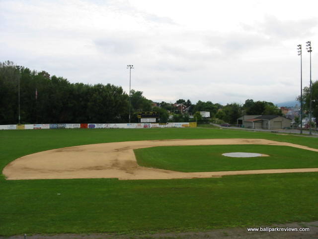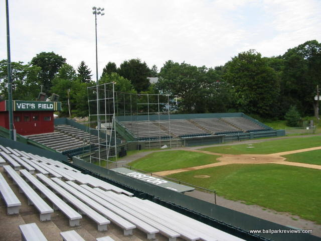 | A few years before Altoona built Blair County Ballpark to host an Eastern League franchise, an independent league team called Vet's Field home for two seasons. In 1996, the Altoona Rail Kings were part of the short lived North Atlantic League. Then in 1997, the Rail Kings switched leagues to the Heartland League. I am unsure if this ballpark ever hosted any professional teams before 1996. Despite being quite old, the park still appears to be in decent shape. The grandstand is split into three sections of seating, each of which is uncovered. All the seating is backless metal benches except for a couple rows of bucket seats. Vet's Field is nestled into a neighborhood at the top of a hill, making for a rather unique setting. While it will never host pro ball again, Vet's Field apparently still gets plenty of use by amateur teams.