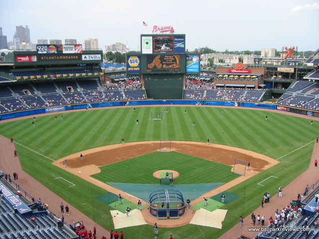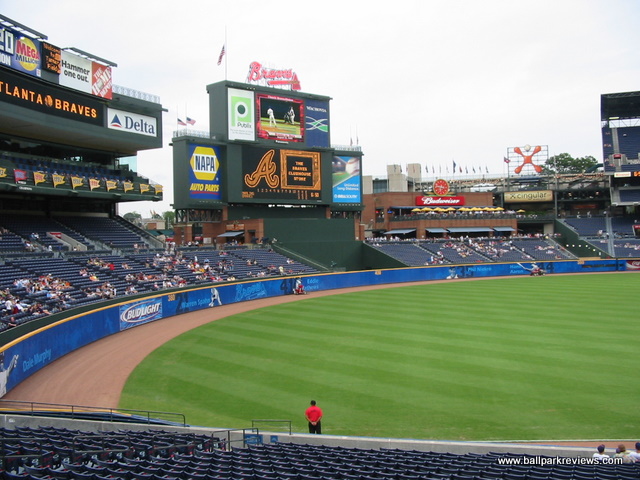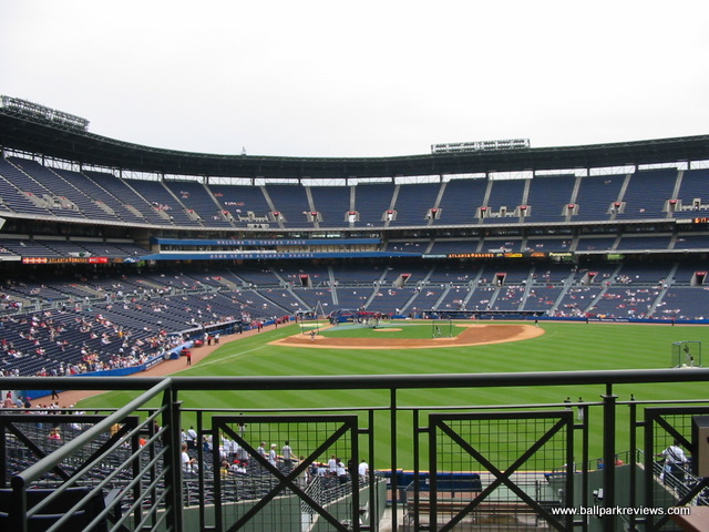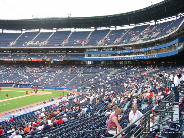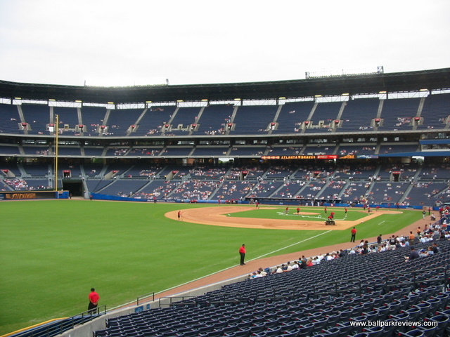 of a ballpark. One nice touch is the dual concourses - there is one for both the 100 level and 200 level seats. This really helps to ease the stampede of fans that usually occupy the main concourse of a stadium. The atmosphere at Turner Field can be a bit minor league at times - silly contests are done between many innings and the soundtrack can be annoying. With the outfield open (and Fulton County Stadium now torn