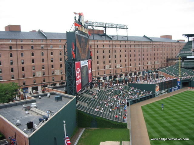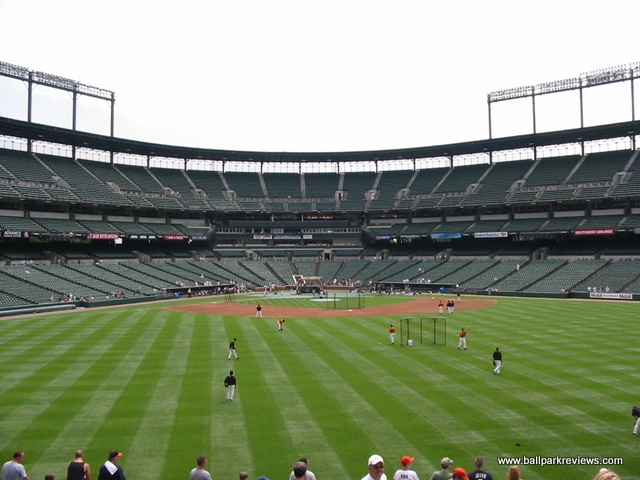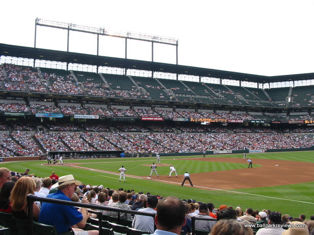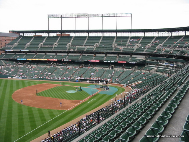 All the seats are angled towards the infield, but aisles are a bit cramped compared to parks built since Camden Yards opened. The upper deck seats are higher than the older parks (like Yankee Stadium), but lower than many of the new parks (like GABP and Coors Field). Over a decade after opening, Camden Yards still holds up pretty well. The only complaint that some might have is with the concourse area. It is not in view of the field and does not allow fans to circle the ballpark completely. But to me this isn't a big deal. Camden