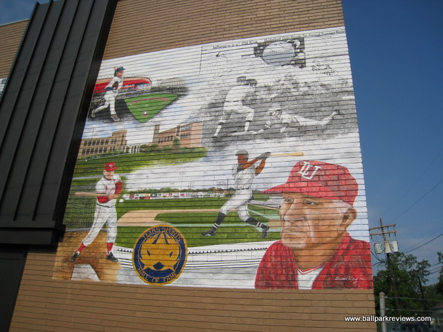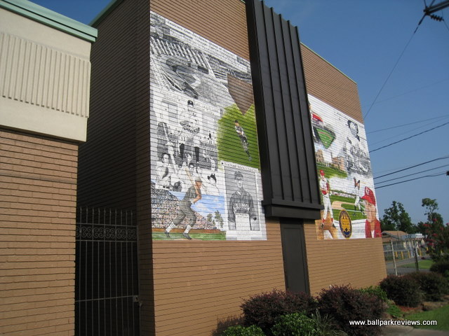 | Stuart Stadium was home to a Texas League team from the 1920's through the early 1950's. The ballpark was razed in 1955. A shopping center now stands on the location. Fortunately, there is a reminder of the old ballpark. On the exterior of the bank, facing Avenue A, is a large mural describing Stuart Stadium and the history of baseball in Beaumont. It is quite a nice piece of artwork and sure beats just an historical marker. |