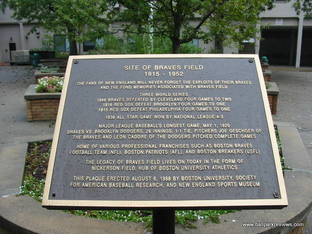 The site of Braves Field is located about a mile from Fenway Park and is well worth a visit.