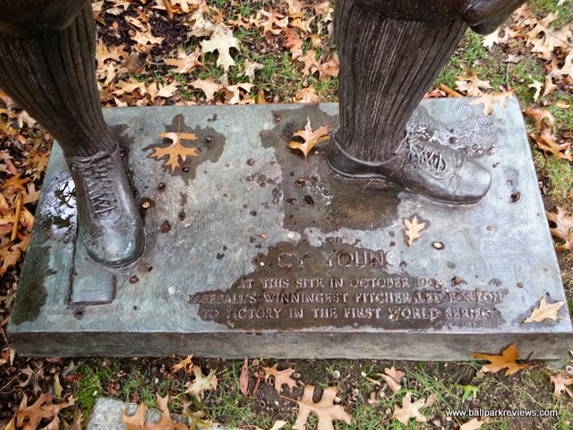 While there are no remnants of the park on the site, there is a statue and plaque that still mark what was here before the college. The statue is of Cy Young and is located near where the