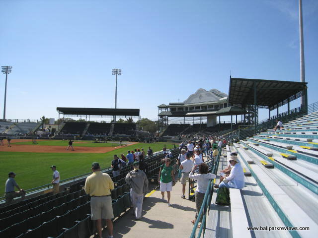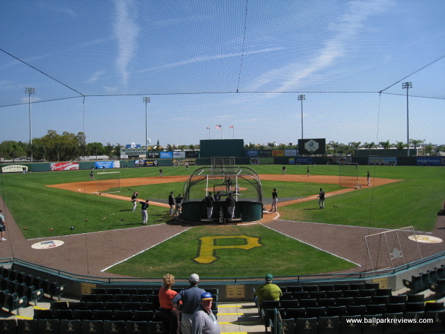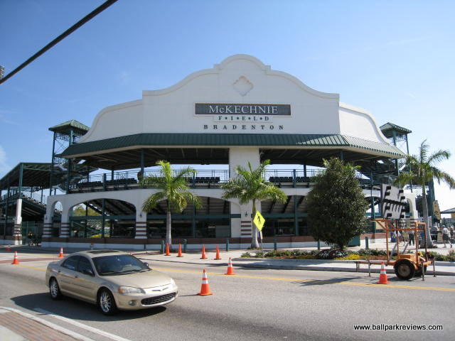 | McKechnie Field (now known as LECOM Park) is the spring training home of the Pittsburgh Pirates. And up until 2010 that was the only professional ball that was played here. It underwent major renovations in 1993, but still remains a rather basic park. The seating is split into three distinct sections - one behind home plate, and one along each baseline. Approximately 1/3 of the seats are covered. The seats are comprised of plastic folding down chairs, buckets seats, and backless metal benches. Because of all the plastic and metal, the park has a rather cheap feel to it. Lights were added before the 2008 season, so now night games can be played here. This was the last spring training venue to install lights. The concourse area is located behind the home plate and first base grandstands. It features plenty of concession stands with high quality ballpark fare - the best of which are the foot long hot dogs. Because of its location on a busy road, parking is quite limited and only available in private lots (most charging $5). The atmosphere here is one of the most laid back you'll find in Florida, probably because Pirates fans tend to be less than rabid. Just a nice, comfortable park to take in a Grapefruit League game. And starting in 2010, it will also be home to a Florida State League team, as the Pirates bought the Sarasota Reds and moved them here. Extensive renovations have been made here in recent years, including the addition of an outfield concourse.