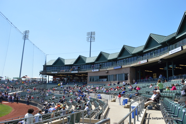- There is no wraparound concourse and only a small grassy berm in the right field corner. Though with the train tracks running close behind the fence, making an outfield concourse may not be possible.