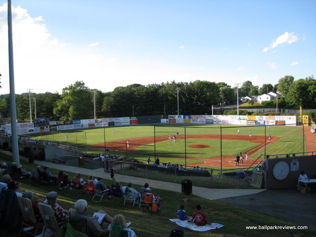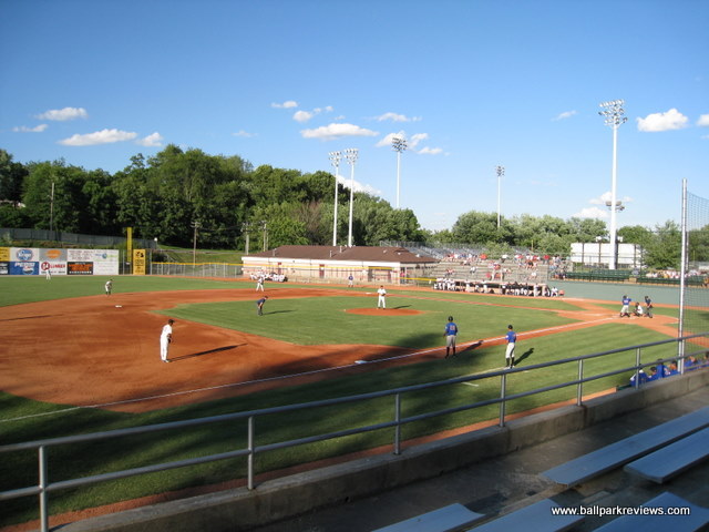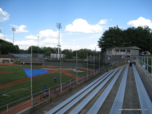 | You have to wonder if the folks of Bristol realize how lucky they are. Being able to retain minor league baseball since 1969 in what is probably the worst professional facility in the country makes them pretty fortunate in my mind. But having finally seen a game here in 2008, there is something endearing about the authentic baseball experience that you get here. Devault Memorial Stadium is located in a rather residential area, directly adjacent to a high school football stadium. Parking is actually located next to the football field, so fans must walk along a path around it in order to get to the baseball park. So it is a bit far, but fortunately it is free. The park itself it made up of three types of seating - several rows of box seats behind home plate, concrete bleachers along the first base line and behind home plate, and metal bleachers (set on concrete) along the third base side. In addition, many fans setup lawn chairs on the hill behind the press box which overlooks the field. While most seats are close to the field, almost all (except those far down the third base line) are obstructed by a thick netting. Concessions and souvenirs are available at stands located beneath the press box. Concessions, which are limited in variety, are sold by a local high school. The only unique food offering is Chik-Fil-A sandwiches which are quite tasty. As with all Appy League ballparks, prices are dirt cheap on everything. Hot dogs are $2, drinks just a $1. Tickets are only $3 for general admission and $5 for reserved. Outside of Oneonta's Damachke Field, Devault Memorial Stadium may have the best baseball atmosphere of any park in the minor leagues. There are only a few between inning games (dizzy bat race, chicken toss, ball toss) and no annoying onfield DJ. The team also does a few other lucky number and trivia contests, but nothing which detracts from the game. Also, unlike almost every other minor league team, they don't feel it necessary to blare music and sound effects between batters or pitches. Instead you only here the natural sounds of the game - the crack of the bat, the calls of the umpires, the communication between the fielders, and the yelling of passionate fans. I really wish it was like this at more ballparks. And the Bristol Sox don't feel it necessary to set up tons of games to entertain the kids. Just a speed pitch booth is available to distract them. There isn't even a mascot on hand. They are selling baseball and nothing else. One nice touch at the ballpark is the presence of a plaque recognizing Ron Necciai's feat of striking out 27 batters in one game for the Bristol Twins in 1952. Devault Memorial Stadium certainly is not the most comfortable place to see a game, but the authentic baseball atmosphere does make it worth a visit. It is certainly unlike anything you'll experience anywhere else. With the minor league restructuring of 2021, the Appy League was converted to a collegiate summer league.