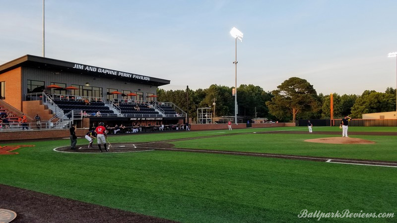 Buies Creek had never hosted professional baseball before 2017. And after 2018, they probably never will again. But due to a unique arrangement established by the Houston Astros, a Carolina League team was allowed to set up shop here while awaiting a new ballpark to be constructed in Fayetteville (about 45 minutes to the south). Apparently the Astros simply wanted a good facility for their players and didn’t care about drawing fans. Because of this, for the baseball purist, it doesn’t get much better than this. Located on the campus of Campbell University, Jim Perry Stadium is also the home of the college team (the Camels). While the field dates back to the 1940’s, a new grandstand was built in 2011 and additional renovations (including an artificial turf field) were completed before the 2017 season.