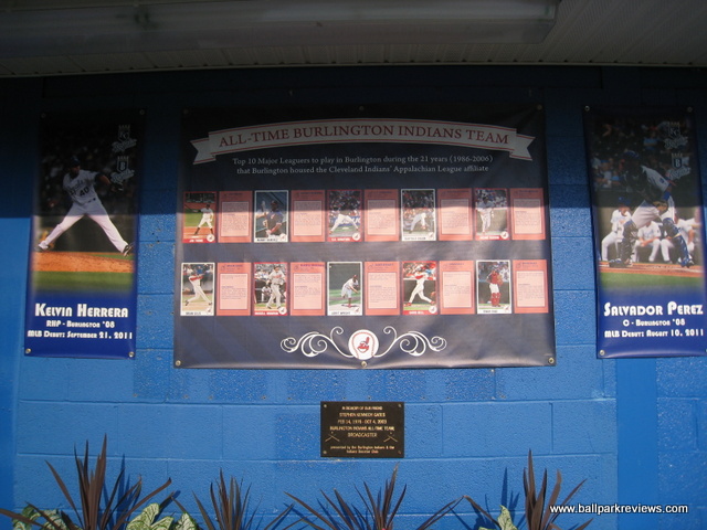 - The history of the team is on proud display here as there is a display on the back of the grandstand depicting some of the best players to come through Burlington. Also, the men’s room contains some cool murals of famous Burlington players.