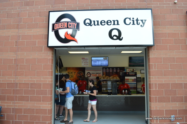 - Being in the south, BBQ is a must. Here they have two stands (one on each side of the ballpark) run by Queen City Q, a local restaurant located in downtown Charlotte. They offer up pulled pork and brisket sandwiches as well as a few different sides.