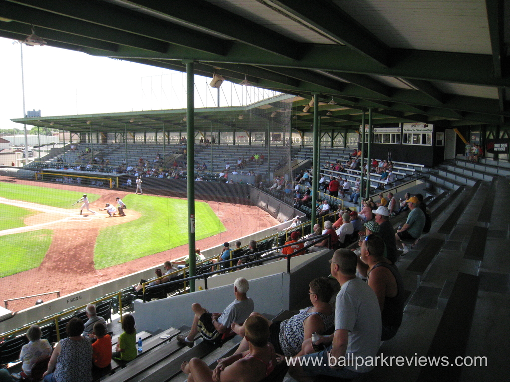 | Though the original name of this ballpark, Riverview Stadium, may indicate that it is in view of the river, it is in fact not. The casino riverboats which sit on the river are within view, but no water is actually visible from the park as it sits a couple hundred yards from the Mississippi. The corporately sponsored name, Ashford University Field, is also a misnomer as the ballpark is not actually located on the campus. This classic WPA ballpark features a large covered grandstand that extends past both the first and third base bags, and covers every seat in the house. Renovations completed prior to the 2006 season have greatly improved the fan experience and allowed the city to keep their affiliated team.