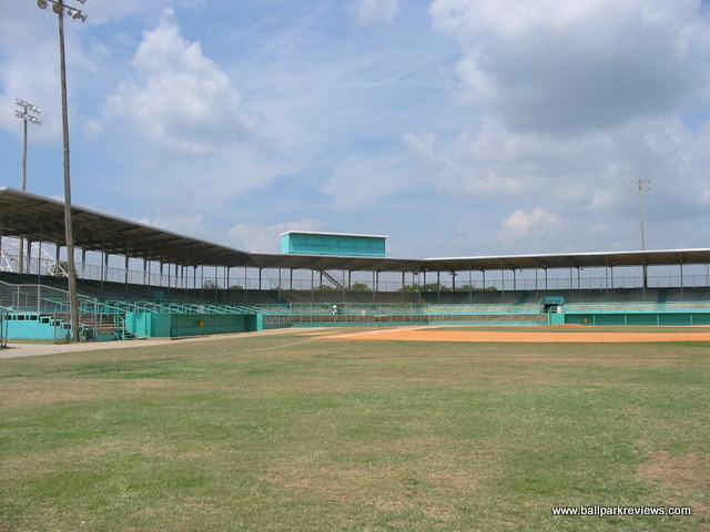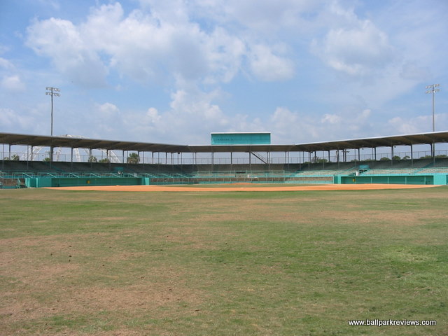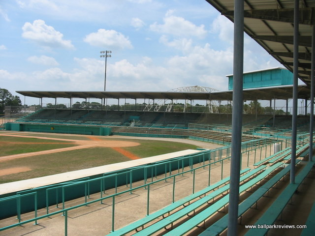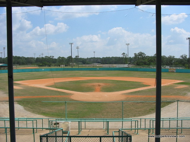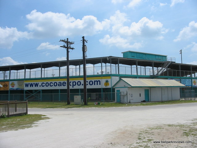 | Cocoa Expo Stadium was last used by professional baseball when the Marlins used this as their spring training home for their inaugural season of 1993. Before that, the Astros had also used this ballpark as their spring home before moving to Kissimmee. It last hosted minor league baseball in 1977 when the Cocoa Astros of the Florida State League played here. Cocoa Expo Stadium is now independently owned and operated and is used by amateur teams and camps. Professional baseball was given another shot here in the winter of '09 when the Space Coast Surge of the Florida Winter League arrived, but the league was short-lived, not even making it through one full season. After years of lackluster upkeep, the ballpark received $40 million of renovations in 2012, now making it a desirable training complex for amateur teams. The teal colored seating has all been replaced by red chair back seats. So it appears this ballpark will live on for many more years.