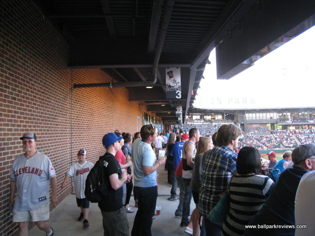 - The two sided concourse is definitely unique. On the backside are the bathrooms and a few beverage carts, while on the ends there are concessions stands. The front side, which is open to the field, doesn't have any amenities, so is mostly used as standing room or for fans who like to wander.