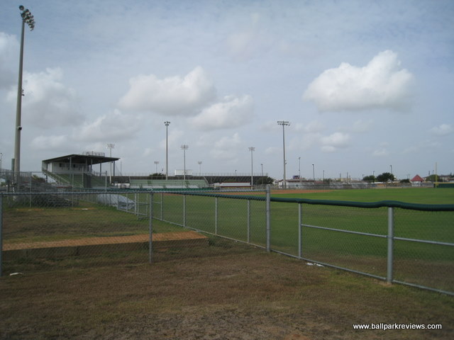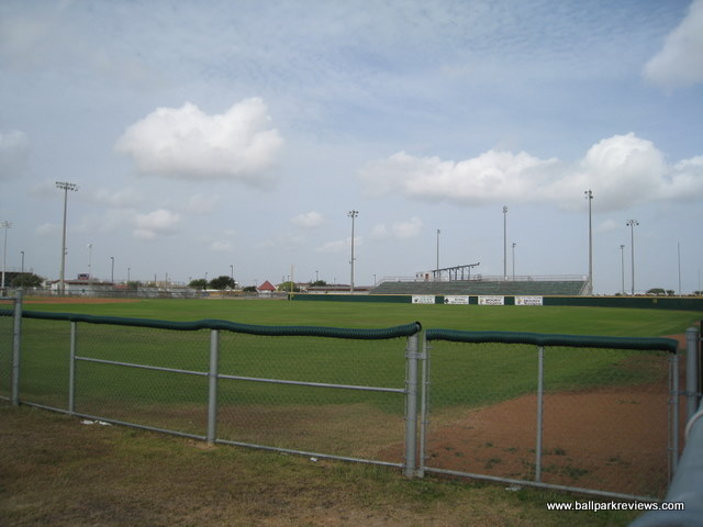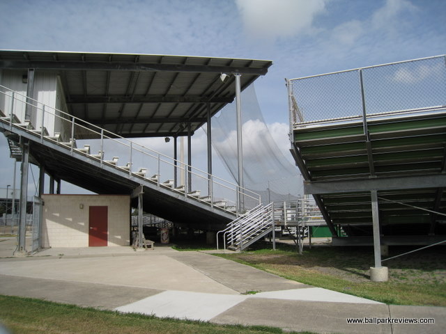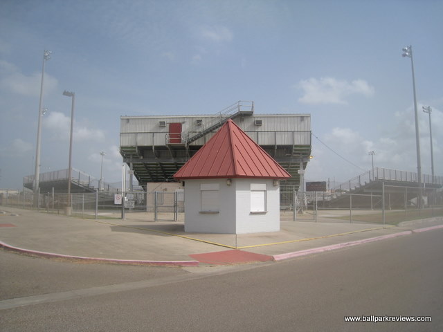 | Cabaniss Field last hosted professional baseball in 1995 when it was home to the Corpus Christ Barracudas of the Texas-Louisiana League. It also hosted teams for a brief period during the 1970's. Never suited for pro baseball, Corpus Christi finally get a real ballpark in 2005 with the building of Whataburger Field. Cabaniss Field is an all metal ballpark with a small covering on the grandstand behind home plate. I was unable to get inside during my 2008 visit. |