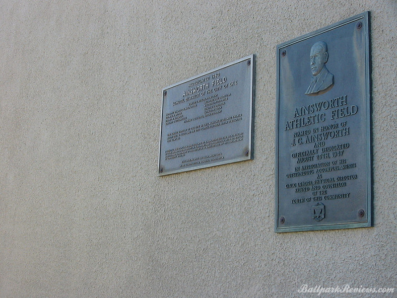 | Ainsworth Field has played host to many different professional teams over the years, most of them nicknamed the Sailors. The last of them played in the indepedent Frontier League in 1994. This was the last year before UPMC Park opened. Nestled in a residential section and adjacent to the Roosevelt School Ainsworth Field is a classic minor league ballpark with a covered grandstand. Apparently it still receives quite a bit of use from amateur teams and appears to be in great shape. Unfortunately, I was unable to get inside during my visit.