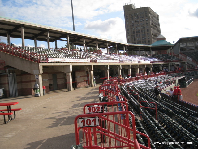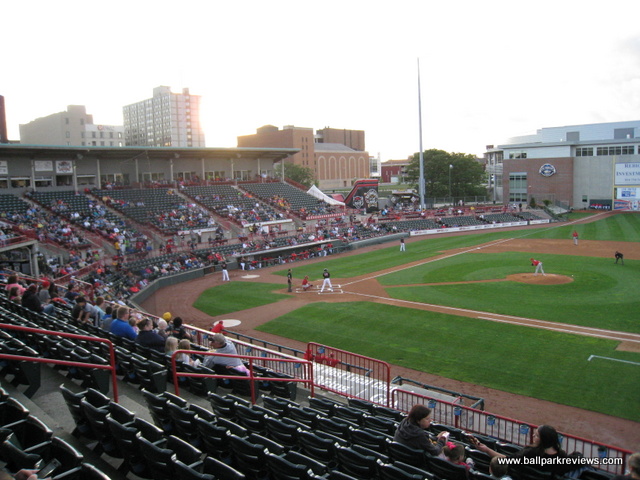 - The location in downtown Erie forced the architects of the ballpark to make it unique. The aspect I like the best is the small upper deck on the first base side. Seats here allow for great sightlines that still feel close to the action.