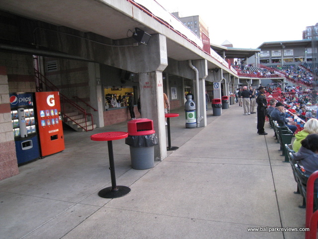 - The lack of a wraparound concourse in a newer ballpark is something I always miss. However, here it would have been near impossible to include since the ballpark is tucked in amongst a neighborhood and an arena. In fact, the left field wall essentially IS the arena.