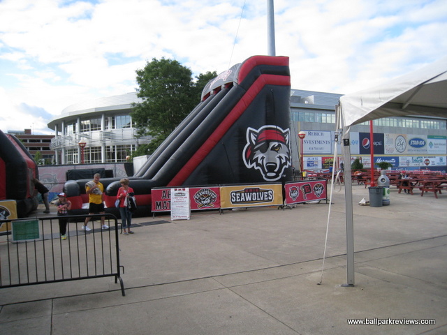 - A kid's play area is located if the left field corner. It features a bounce house and a large inflatable slide.